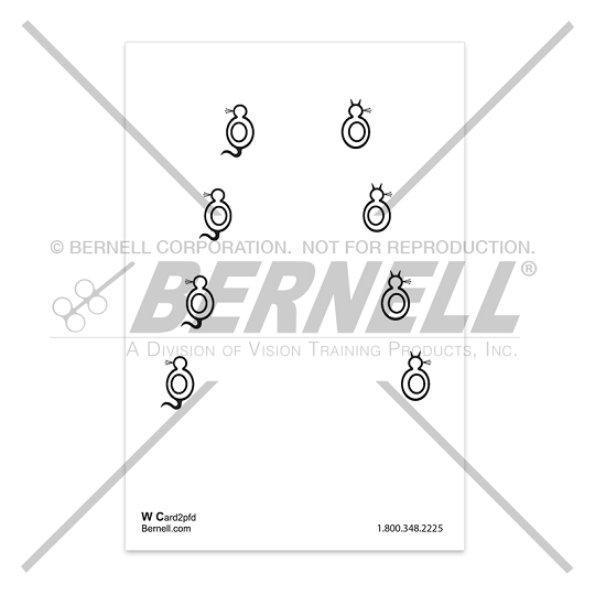 This new progressive free space fixation training set is composed of 7 fixation cards. The free space cards set works to train both convergence and divergence reserves across a variety of cards. The first three cards feature two Wiley Cat targets with simple, progressively more difficult eccentric rings, and red/green rivalry tasks. The next 4 cards are increase fusional demand by either varying the distance or by cutting and separating the card. The cards are available in opaque or clear sets, please specify when ordering.