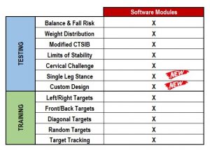 - 5 modules focus on training balance. This software aims to offer a complete solution to not just identify balance issues, but also training balance for improvement.