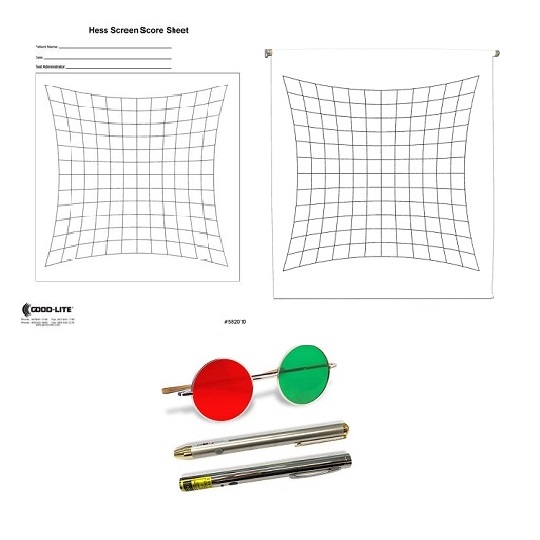 Hess Complete Test Kit is more useful in understanding full visual field and any Aniseikonic affects. Further, the Hess Test may be more simple for children to understand thus yielding more reliable results in pediatric situations compared to Lancaster Test.