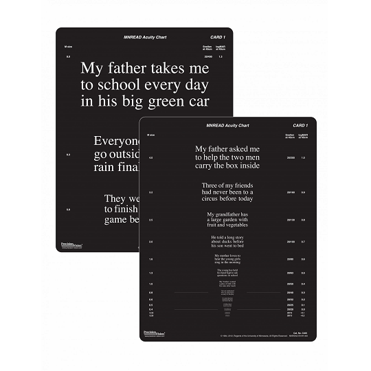 The MNREAD Acuity Charts are continuous text reading acuity charts for normal and low vision.