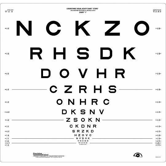 ETDRS charts use a series of three charts with different permutations of optotypes. ETDRS Chart 1 is used to test the right eye’s acuity. ETDRS Chart 2, and Chart R are used to test the visual acuity in the left eye and both eyes, respectively. The use of three ETDRS eye charts to test the visual acuity of one patient prevents memorization and helps increase accuracy and consistency in results.