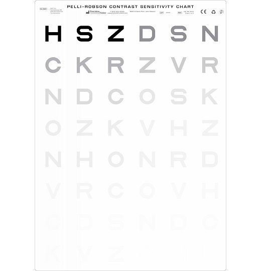 Designed by DG Pelli, JG Robson and A J Wilkins, because they see contrast sensitivity as a realistic assessment of how well the patient sees large faint objects.