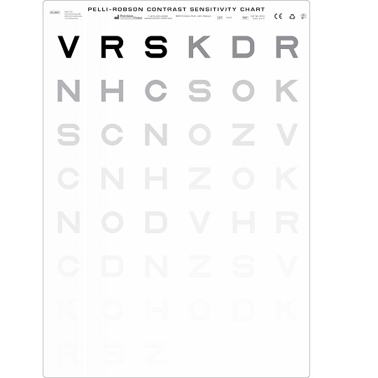 Designed by DG Pelli, JG Robson and A J Wilkins, because they see contrast sensitivity as a realistic assessment of how well the patient sees large faint objects.